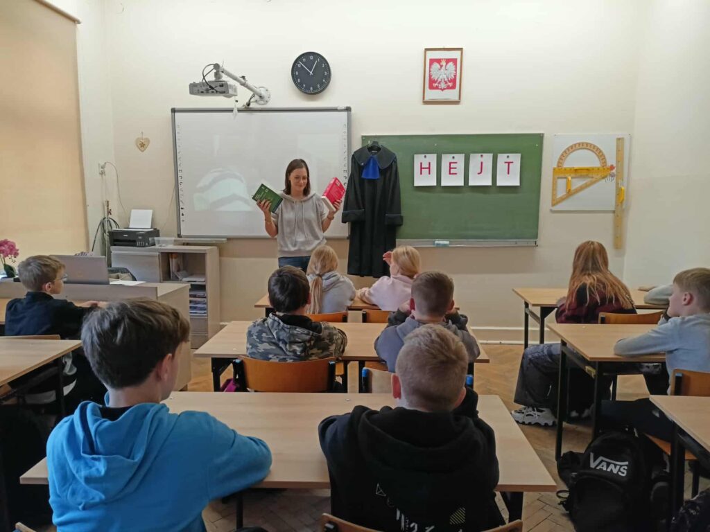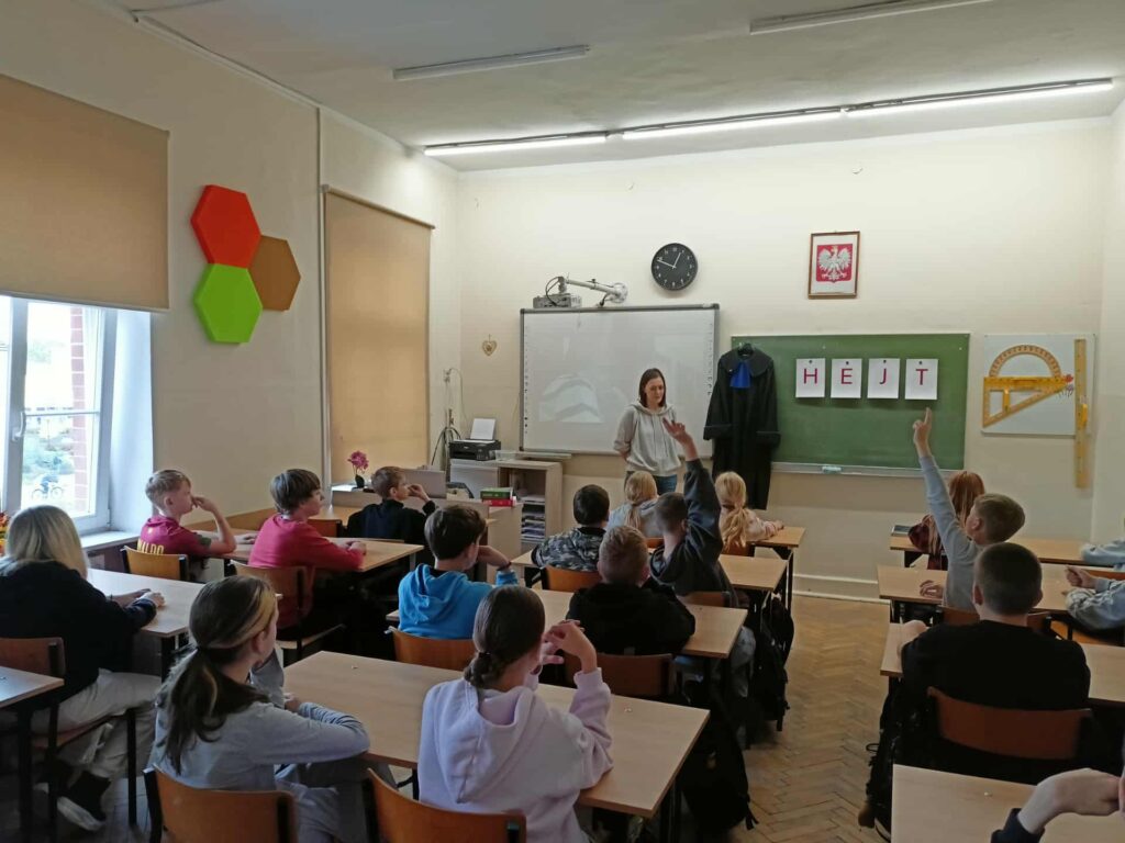 Zajęcia poprowadzą profesjonaliści – radcy prawni oraz inni specjaliści z zakresu prawa i edukacji. Dziś z tematyką dyskryminacji zetknęli się uczniowie obu klas piątych, którzy poznali różne formy hejtu, agresywnych i nienawistnych zachowań oraz ich skutki. Dowiedzieli się, jak je rozpoznawać, zapobiegać im, gdzie szukać pomocy i jak sobie z nimi radzić.Przed nami kolejne spotkania z innymi klasami!