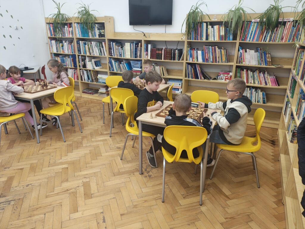 Od 26 września 2022 roku odbywają się w naszej bibliotece „Spotkania przy szachach”. „Królewska” gra zwiększa umiejętność logicznego myślenia oraz doskonali koncentrację i kształtuje osobowość. Uczniowie na zajęciach uczą się od podstaw, podnoszą poziom już nabytych umiejętności, ale również wyciszają się i spędzają czas w miłej atmosferze. Zajęcia odbywają się w poniedziałki w godzinach 14.30 – 15.15, wtorki 11.45 – 12.30 i środy 13.40 – 14.25. W przypadku chęci uczestnictwa, ale braku możliwości dopasowania do wyżej wymienionych terminów, proszę skontaktować się