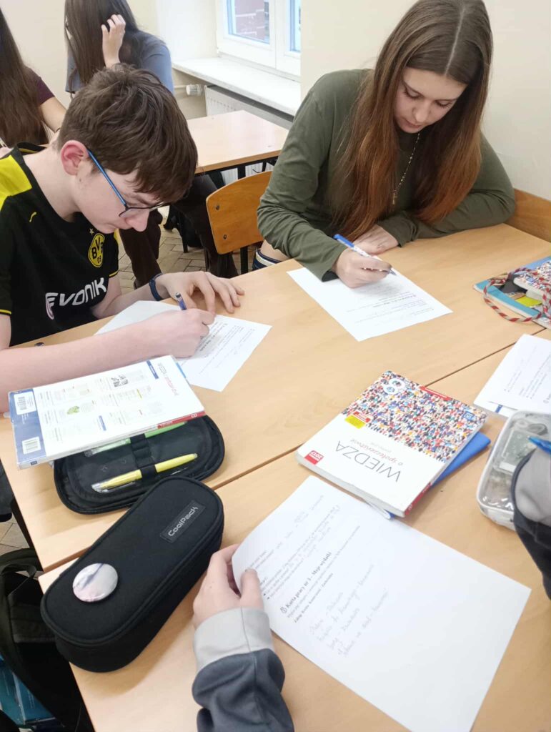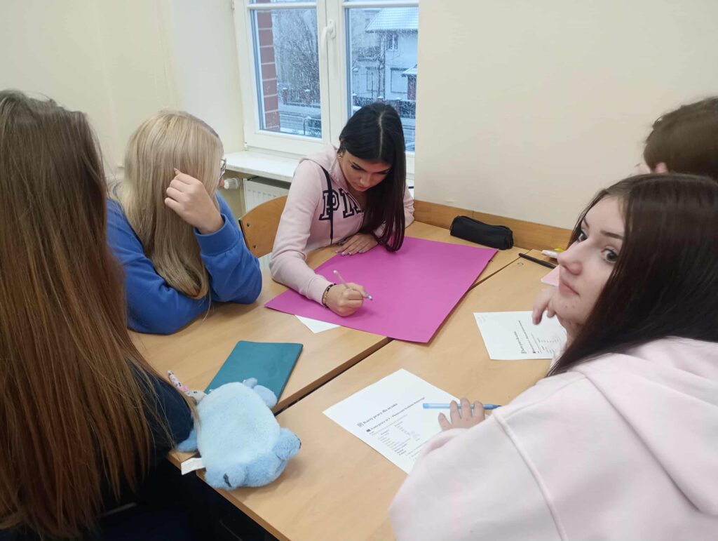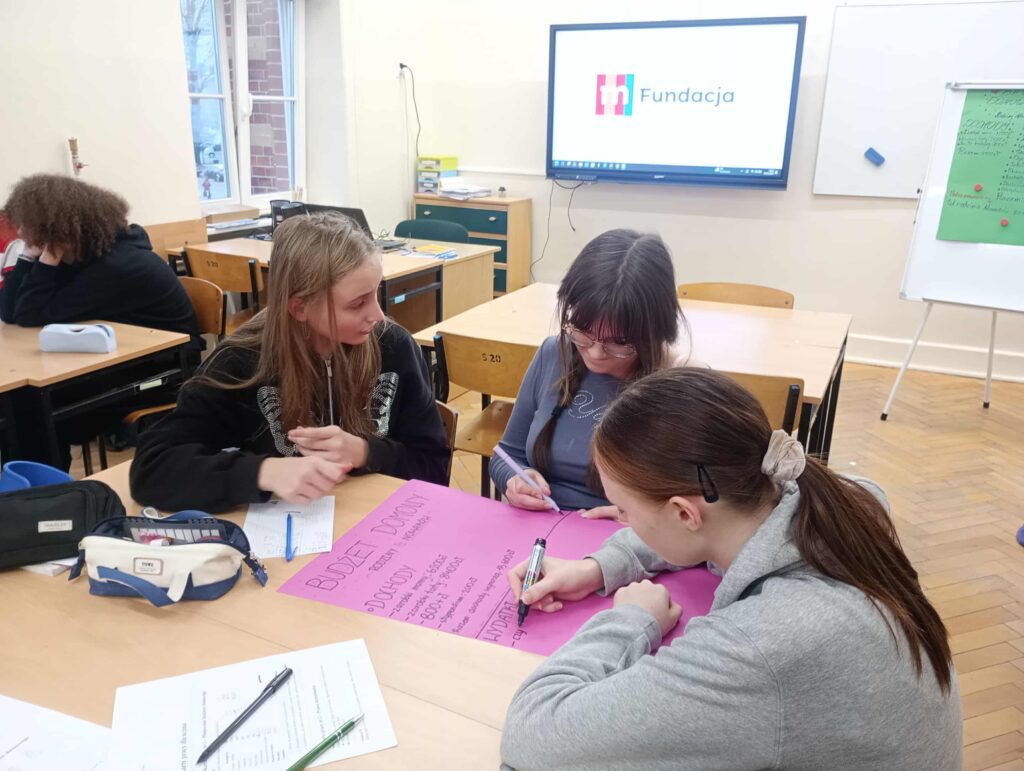 Uczniowie pracowali w grupach z kartami pracy dotyczącymi prawa konsumenta oraz planowania budżetu domowego. W pierwszej części zajęć omówione zostały podstawowe prawa przysługujące każdemu konsumentowi, m.in. prawo do reklamacji, zwrotu towaru oraz rzetelnej informacji o produkcie. Następnie uczniowie przystąpili do zadania polegającego na wspólnym zaplanowaniu budżetu domowego. Budżet został zaplanowany na dwie główne część: dochody np. wynagrodzenia, świadczenia, dodatkowe wpłaty oraz wydatki m.in – opłaty stałe, żywność, nauka, transport, rozrywka. Grupy analizowały różne przykładowe sytuacje finansowe, ustalając które wydatki są niezbędne do funkcjonowania, a które można ograniczyć lub z nich zrezygnować. W ostatnim etapie zajęć uczniowie dokonali analizy do własnych zakupów z ostatnich tygodni. Każdy zastanawiał się, które z nich były koniecznym wydatkiem, a które stanowiły jedynie zachcianki. Ćwiczenie to pozwoliło im lepiej zrozumieć, jak świadomie zarządzać pieniędzmi oraz jak uniknąć impulsywnych zakupów. Zajęcia zakończyły się krótkim omówieniem wniosków oraz refleksją nad znaczeniem odpowiedzialnego planowania finansów i znajomość swoich praw jako konsumentów.