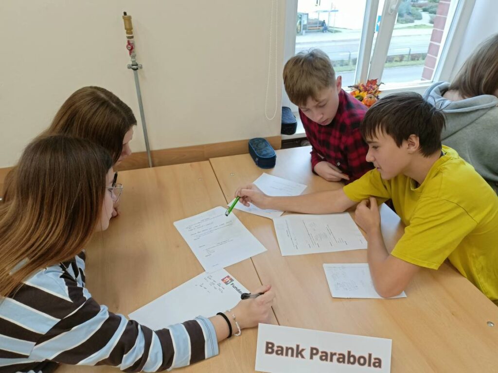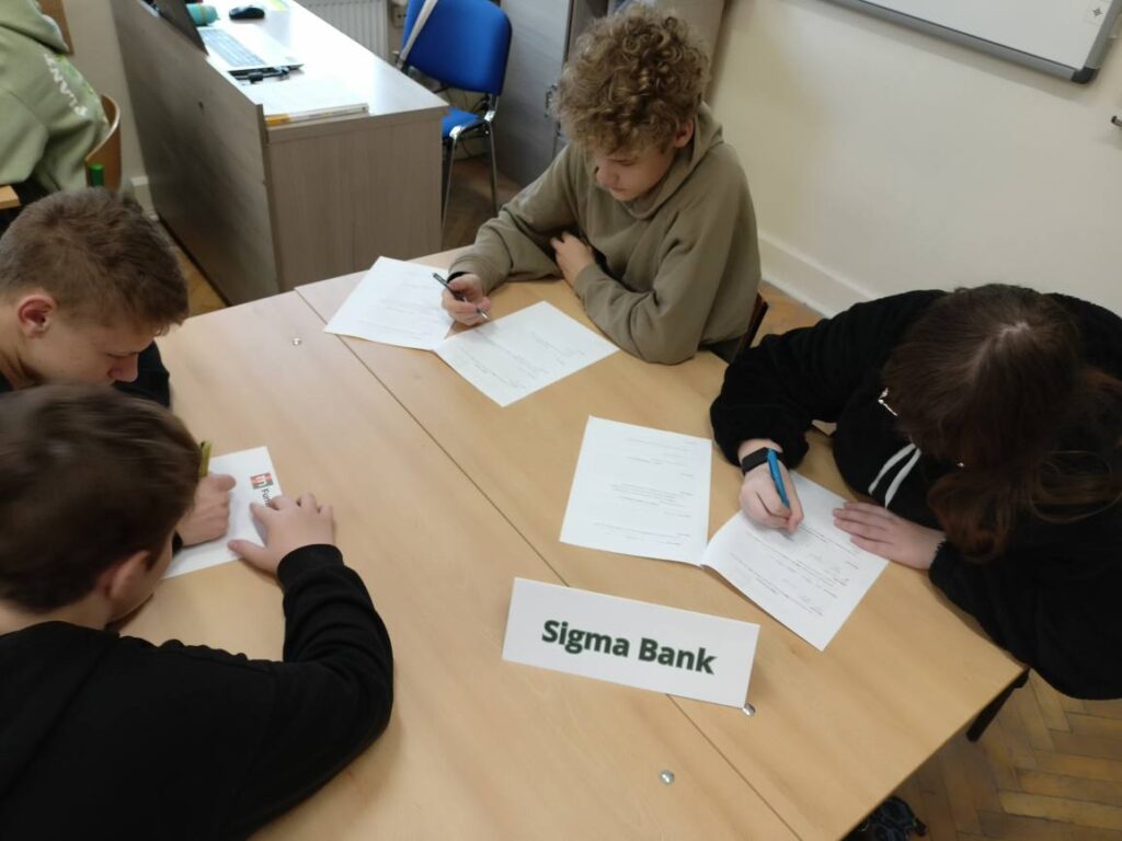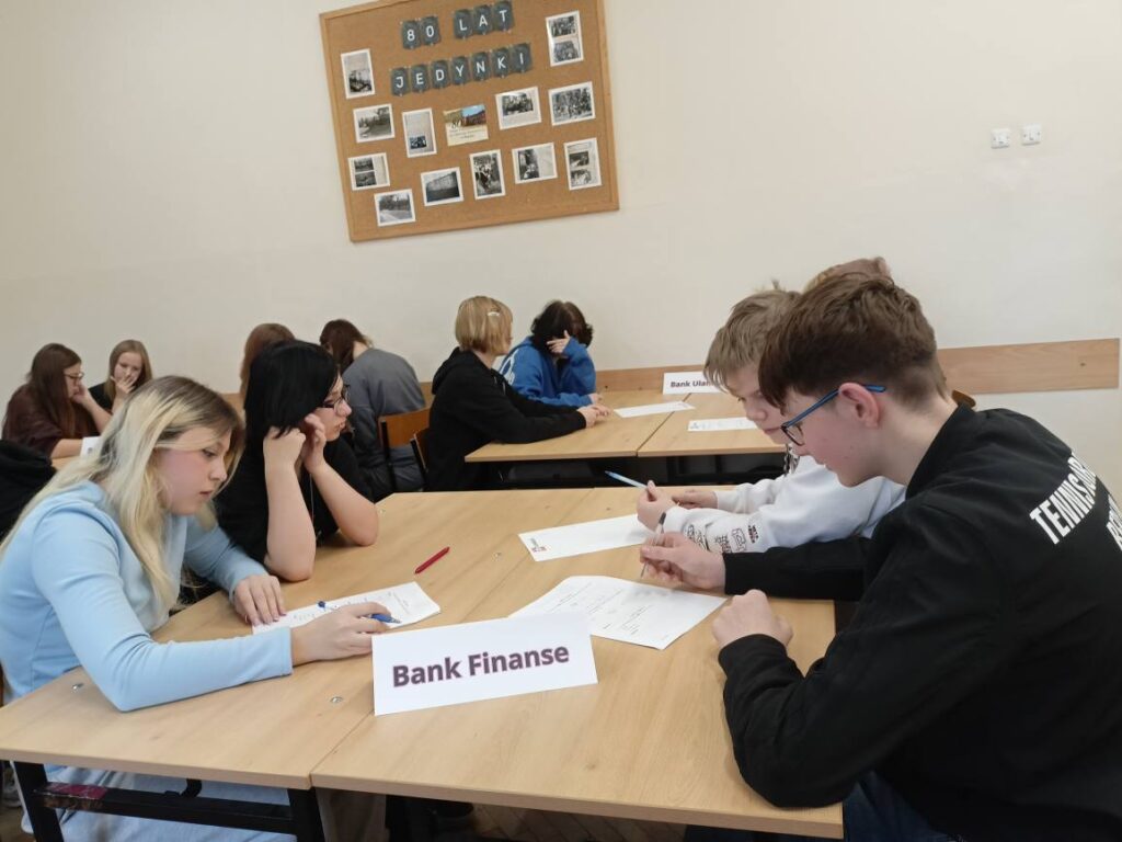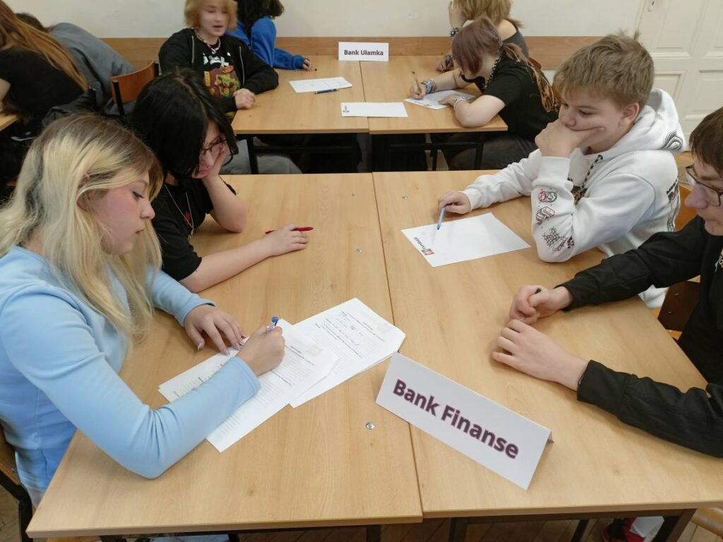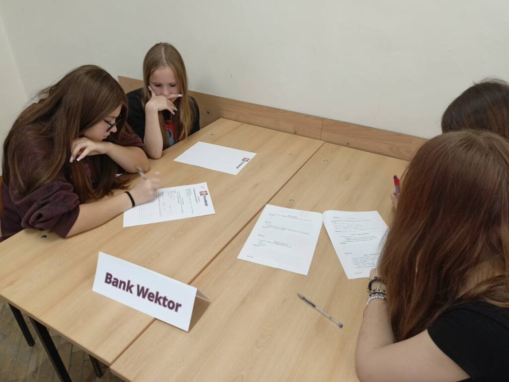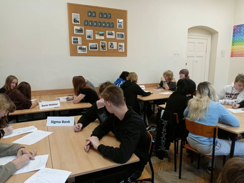 Podczas warsztatów uczniowie poznali zasady działania lokat i kredytów, dowiedzieli się, czym jest podatek VAT oraz jak wpływa na ceny produktów i usług. Wykonali również praktyczne zadania z obliczeń procentowych, które pozwoliły im lepiej zrozumieć zastosowanie matematyki w codziennym życiu. Pracując zespołowo, tworzyli własne wirtualne banki, a następnie podejmowali decyzje finansowe, mierząc się z realistycznymi wyzwaniami – niczym prawdziwi ekonomiści! 💡💳