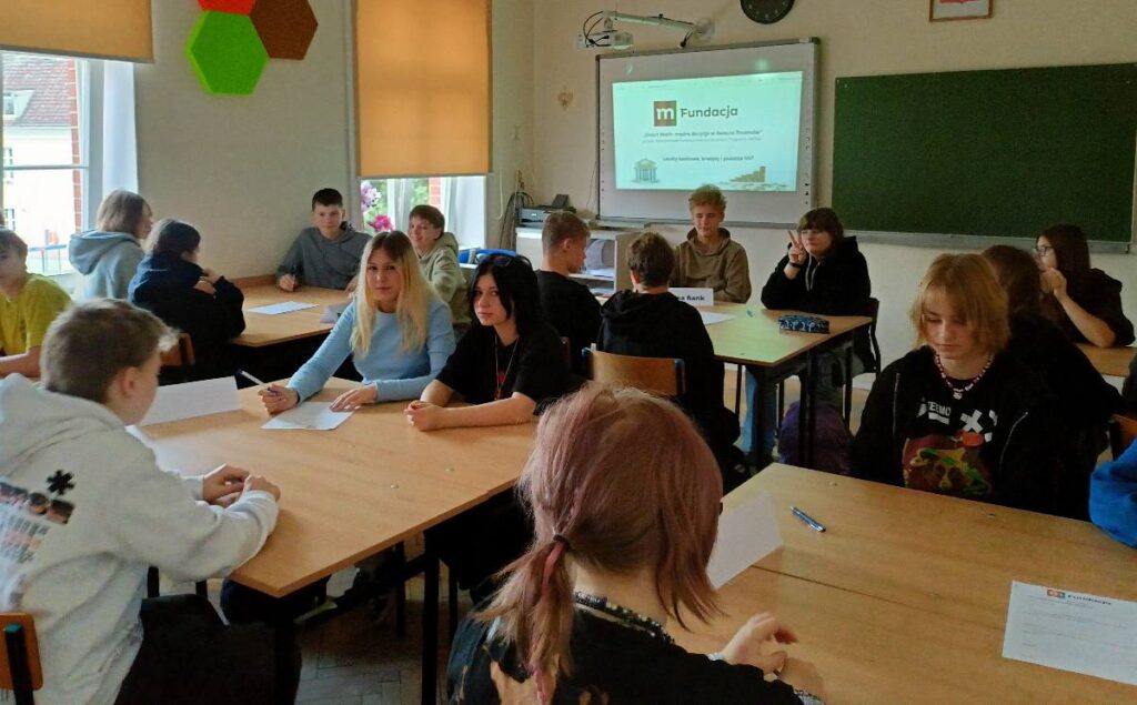 Zajęcia odbyły się w ramach programu mSilnia – projektu „Smart Math – mądre decyzje w świecie finansów”, który ma na celu rozwijanie u młodzieży umiejętności logicznego myślenia, planowania oraz podejmowania świadomych decyzji finansowych. 🧠📊