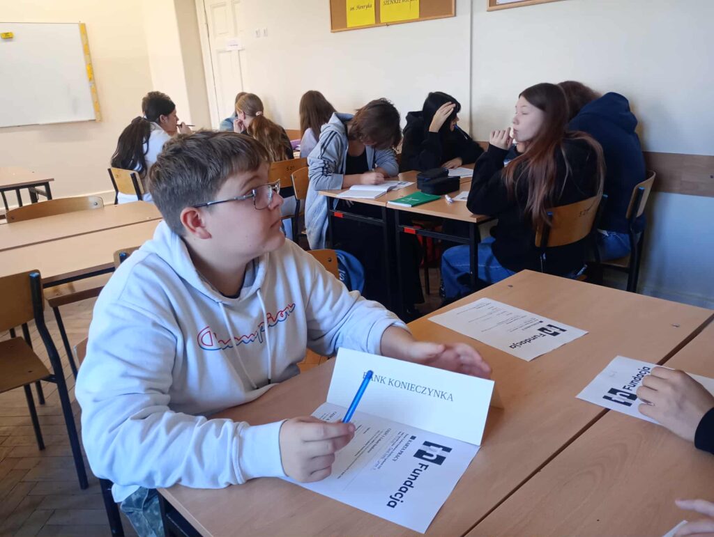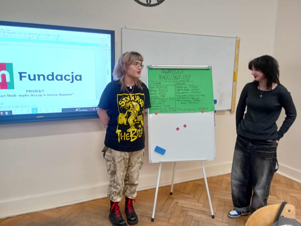 Uczniowie kl. 8a dnia 18.11.2025 r. uczestniczyli w zajęciach warsztatowych ,,Prawo konsumenckie i finanse domowe”. Realizowany w ramach projektu: ,,Smart Math- mądre decyzję w świecie finansów”- dofinansowany przez fundację mBanku. Uczniowie pracowali w grupach z kartami pracy dotyczącymi prawa konsumenta oraz planowania budżetu domowego .W pierwszej części zajęć omówione zostały podstawowe prawa przysługujące każdemu konsumentowi ,m.in. prawo do reklamacji ,zwrotu towaru oraz rzetelnej informacji o produkcie. Następnie uczniowie przystąpili do zadania polegającego na wspólnym zaplanowaniu budżetu domowego. Budżet został zaplanowany na dwie główne część: dochody np. wynagrodzenia, świadczenia, dodatkowe wpłaty oraz wydatki m.in – opłaty stałe, żywność, nauka, transport, rozrywka. Grupy analizowały różne przykładowe sytuacje finansowe, ustalając które wydatki są niezbędne do funkcjonowania, a które można ograniczyć lub z nich zrezygnować. W ostatnim etapie zajęć uczniowie dokonali analizy do własnych zakupów z ostatnich tygodni. Każdy zastanawiał się, które z nich były koniecznym wydatkiem, a które stanowiły jedynie zachcianki. Ćwiczenie to pozwoliło im lepiej zrozumieć, jak świadomie zarządzać pieniędzmi oraz jak uniknąć impulsywnych zakupów. Zajęcia zakończyły się krótkim omówieniem wniosków oraz refleksją nad znaczeniem odpowiedzialnego planowania finansów i znajomość swoich praw jako konsumentów.